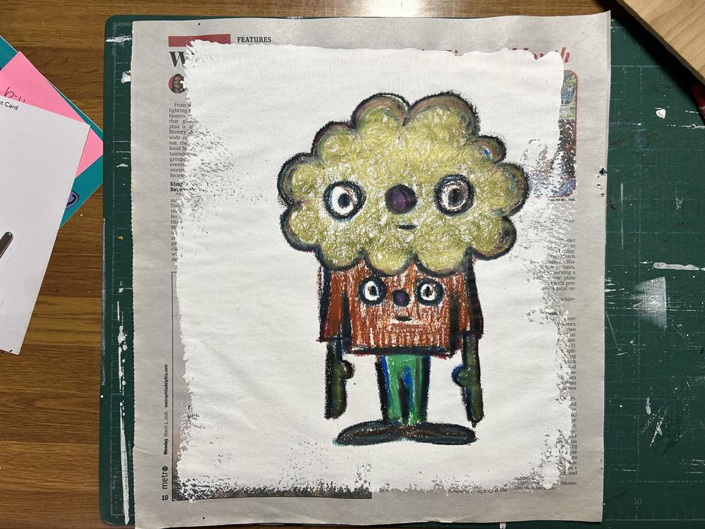 crayon, acrylic paint