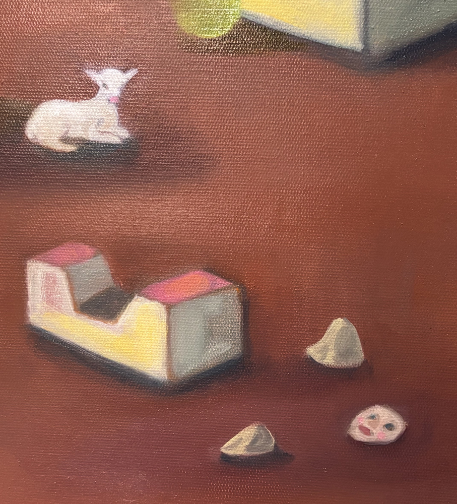 流れ行く時間を俯瞰するかのように箱庭のイメージで描きました。