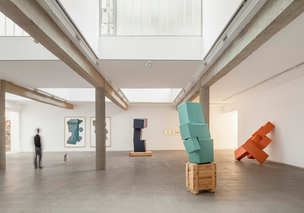 世界の名だたる美術館に所蔵されているジュリアン・ オピーの作品が並ぶGMOのオフィス。 シンプルな点と線で独特な人物を生み出すという 究極のミニマリズムが、会社経営に通ずるとか。